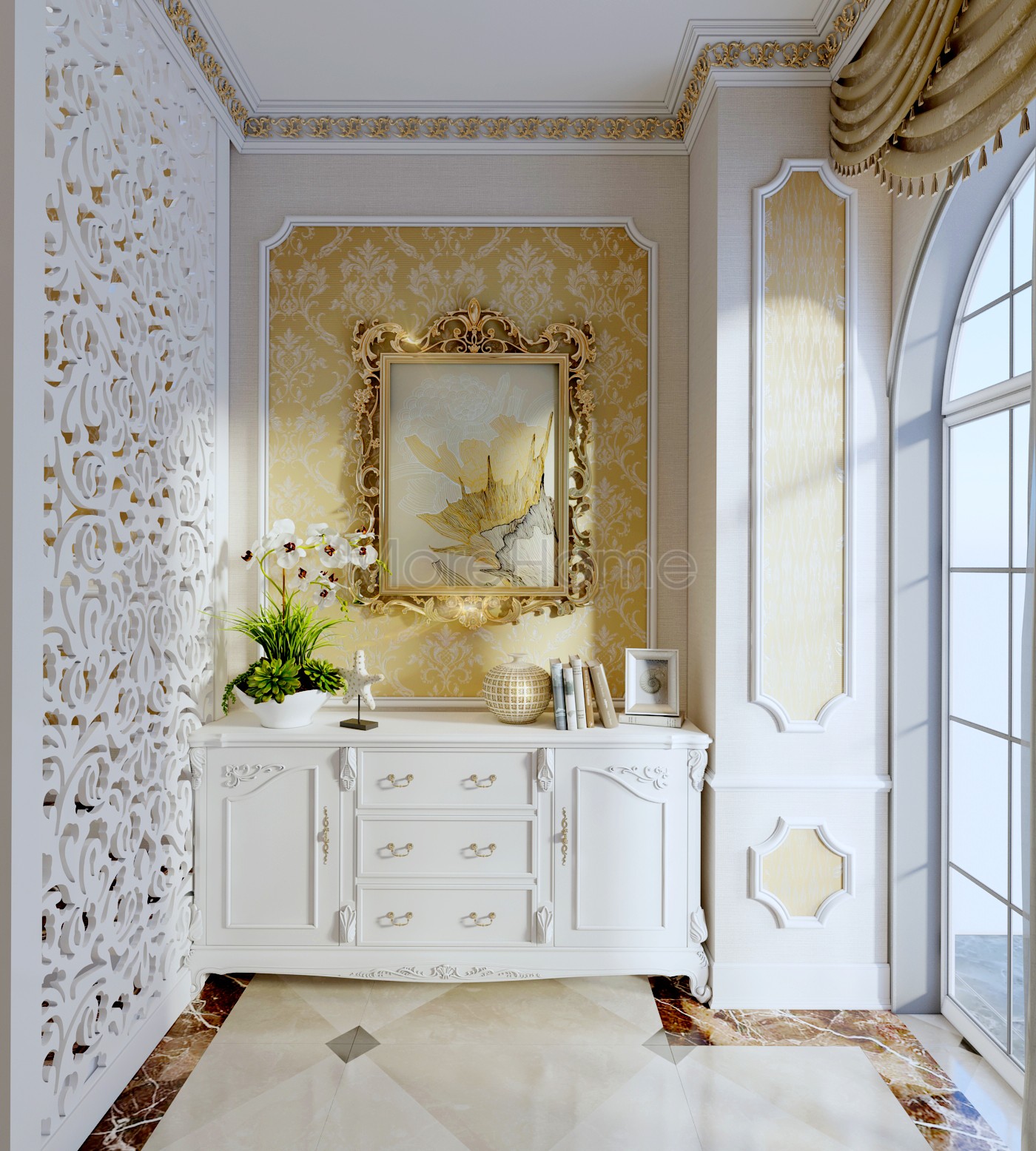 Theo thời gian, phong cách thiết kế nội thất Tân cổ điển là trở thành một trong những phong cách thiết kế thịnh hành những năm gần đây, thiết kế này mang tới cái nhìn gợi cảm hơn cho căn hộ chung cư vốn có không gian cố định bởi những mặt phẳng, những đường cong tinh tế và trên hết là “tỷ lệ vàng” trong các mảng, miếng ngăn chia không gian trong mỗi căn phòng.