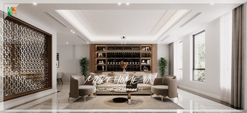 Để làm nên không gian nhà phố, nhà biệt thự sang trọng, trang trí nội thất phòng khách bằng sản phẩm kệ tivi kết hợp tủ rượu tân cổ điển gỗ óc chó thượng hạng sẽ làm cho không gian trở nên đẹp và tinh tế hơn.